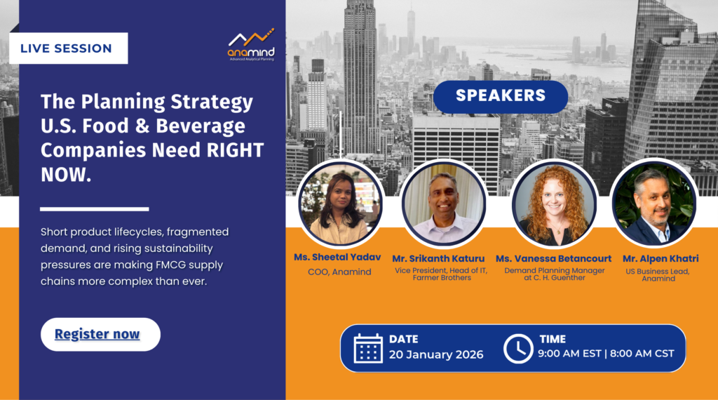 Australia’s FMCG and Food & Beverage supply chains face long inbound lead times, port and transport uncertainty, short shelf life, and highly volatile demand. With margins under constant pressure, traditional planning models fall short. This session is for planners and operations leaders who need faster, more visible, and more reliable decisions across demand, inventory, and supply.